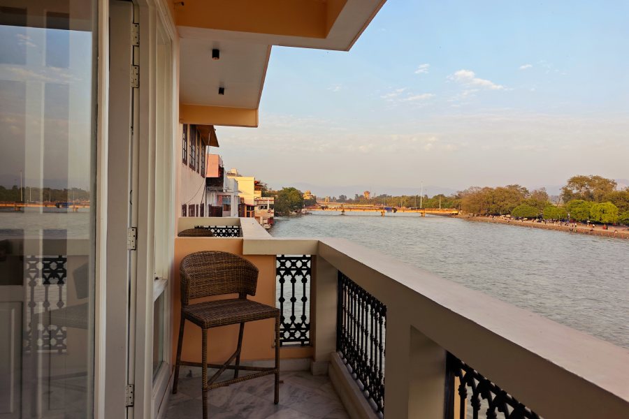 Built within a heritage structure, our hotel boasts six floors featuring seven exquisitely designed, vintage-themed rooms per floor, all fully air-conditioned for your comfort. Each room offers a private balcony with breathtaking views of Maa Ganga, ensuring moments of peace and tranquility.